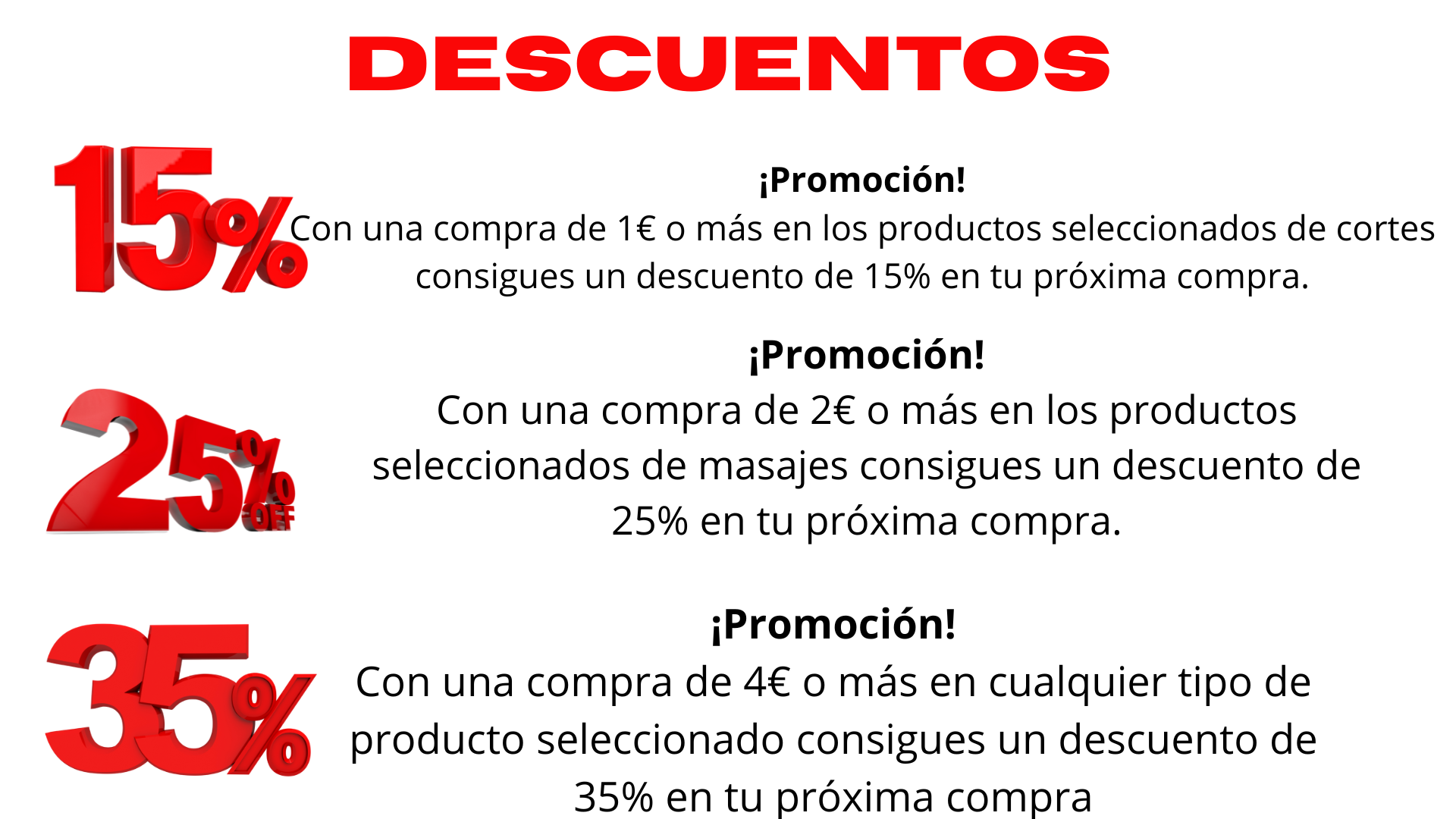 Con una compra de 1€ o más en los productos seleccionados de cortes consigues un descuento de 15% en tu próxima compra.